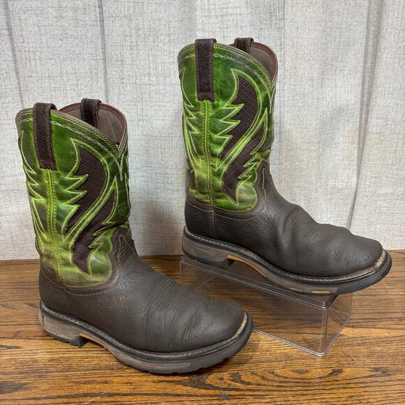 Ariat Workhog Square Toe Western Work Boots Men’s 9.5D Brown/Green Leather