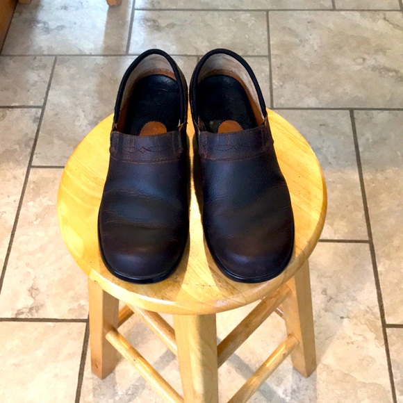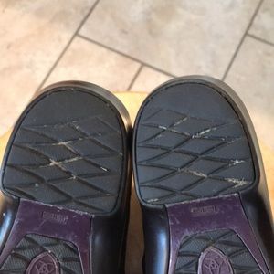 Dark brown leather Ariat clogs some wear on heels as shown