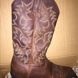 Worn once .. men's size 8.5 brown leather. Black sole excellent condition .