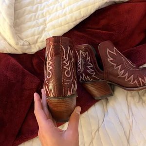 Red Dixon Ariat booties , preloved but only worn a couple of times! Don’t really have space for them anymore so they’ve got to go. These are a Size 7B and are not tight at all they’re very comfortable & cute. Do not come with original box.
