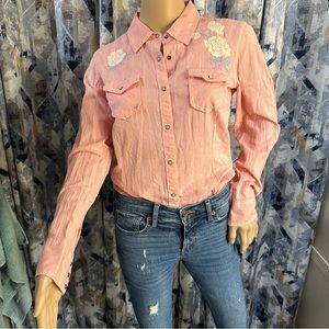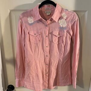 Ariat women’s fitted western style with flower embroidery dark pearl snaps