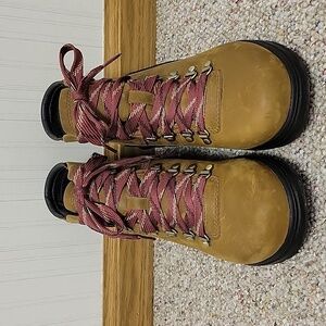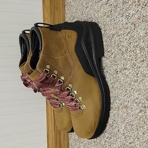 women's new without tags Ariat barnyard waterproof boots in weathered brown. store display. no tags, never worn outside. brown leather, black rubber soles. sz 7 burgundy laces (S3-016)