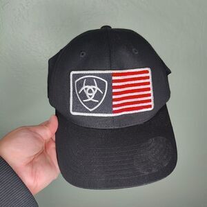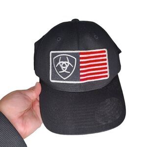 outdoors trendy casual yk2 Ariat western cowboy rockabilly rodeo gorpcore trail cargo sun protect flexible fit American flag USA baseball cap hat
