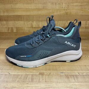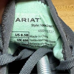 Sleek dark gray sneakers with teal accents. Lightweight and breathable. Ideal for casual wear.