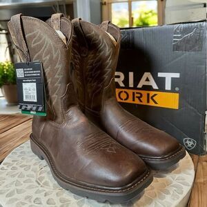 Ariat Men's Groundbreaker Wide Square Toe Regular Work Boots Brown Size 10.5 D
