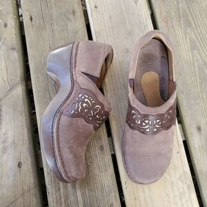 Ariat Tambour Nubuck Suede Leather Brown Gold Laser Cut Clogs 9