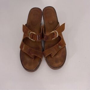 Great pre-owned condition Ariat Tan Leather Heeled Sandals Has buckle detailing Size US 9.5 7O