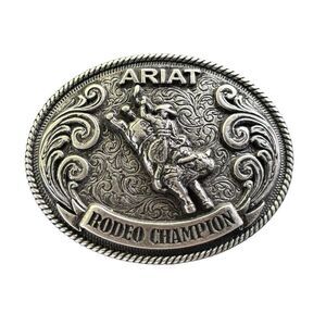 Ariat Youth Rodeo Champion Western Belt Buckle Silver Ornate Design