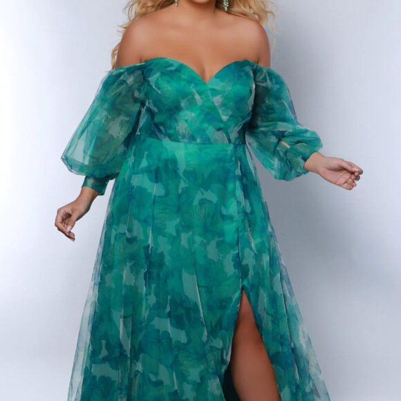 Look like a breath of fresh air hen you wear our floral plus size maxi dress as a wedding guest or to any fancy formal event. The contemporary floral pattern on soft mesh tulle delivers a modern look that's oh-so pretty. Airy, light fabric means your comfortable during the entire special occasion. Flattering sweetheart neckline leaves you to endless options to accessorize with a statement necklace or simple earrings. Sweeping Aline skirt features a slit skirt with an elegant train. Did we mention the playful pockets big enough to stash you cell phone so you can snap pictures at the party? This Dress comes in a pretty green floral or a more dramatic multi-color floral. Style Ariel designed to fit, flatter women who wear curvy plus sizes 14 to 32.