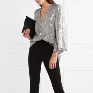 Ariel Metallic Top In Pale Steel/silver size small NWT