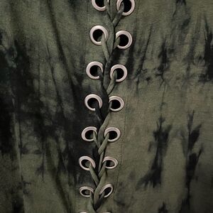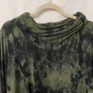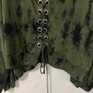 Ariella Black Green Tie Dye Lace Up Back Cowl Neck Short Sleeve Poncho Size OS