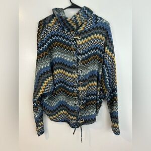 Ariella Blue Zig Zag Chevron Cowl Neck Lace Up Pullover Sweater Size Large