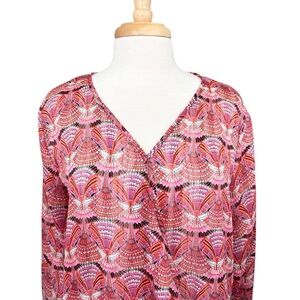 Ariella Lory Pink and Red Long Sleeve Relaxed Blouse Size Medium