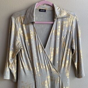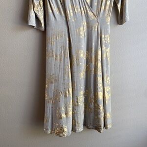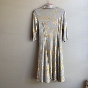 Ariella Women’s Stretch Cocktail Gray & Gold 3/4 Sleeve Mindi Dress size M