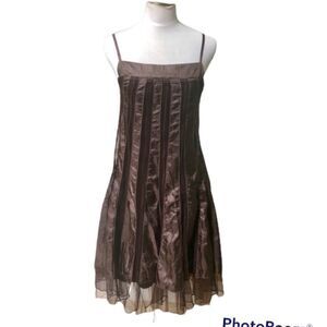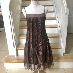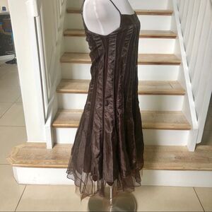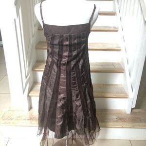 Ariella brown satin mesh midi A line dress in size small
