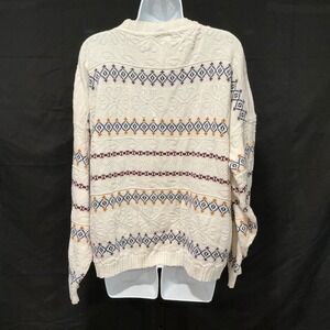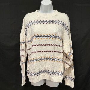 Arielle Cream Cable Knit Geometric Pattern Sweater Made in USA