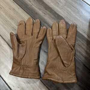 Aris 115 Genuine Leather Polyester Lined Brown Gloves Women's 7.5 Isotoner