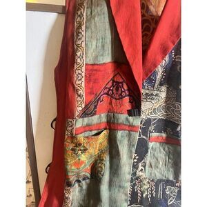 Aris A Asian Print Vest Tang Dragons Landscape Red Women’s 2XL. C