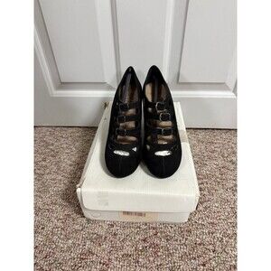 Aris Allen 1940s Criss-Cross 3 Buckle Swing Dance Shoes Pump Black Suede Size 7