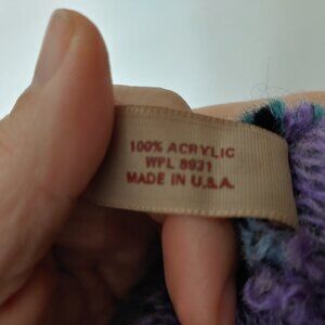 Aris Fair Isle Knit Hat Vintage Beanie One Size Boho Purple Stretch Made in USA