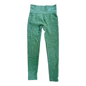 The ECHT Arise Camo Green Seamless 3/4 Leggings in size Small are designed for active women who enjoy outdoor activities and sports.