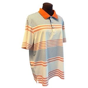 Aristo Pullover Striped Short Sleeve Polo Collared Shirt, Mens size Medium