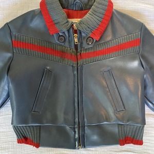 Add some vintage flair to your little boy's wardrobe with this Aristo faux leather bomber jacket in a stylish gray color. The zip closure ensures a snug fit while the bomber jacket style adds a touch of coolness to any outfit. The jacket features the classic Aristo brand, making it a must-have for any fashion-savvy kid. The size 4 jacket is perfect for boys who are looking for a statement piece for any occasion. This jacket is perfect for any boy who wants to look stylish and cool while staying warm and comfortable.