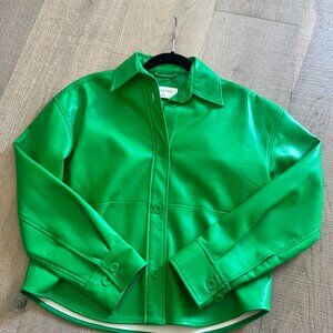 Aritzia bright green faux leather jacket; size x small. Worn once.