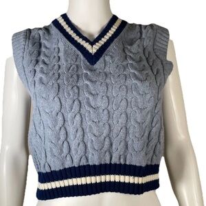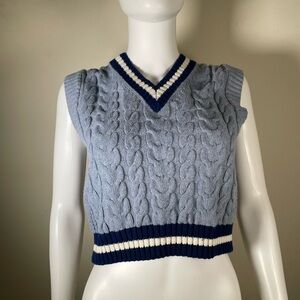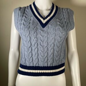 Aritizia Sunday Best Cable Knit Blue Sleeveless Light Acadeima Crop Sweater XXS