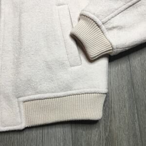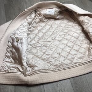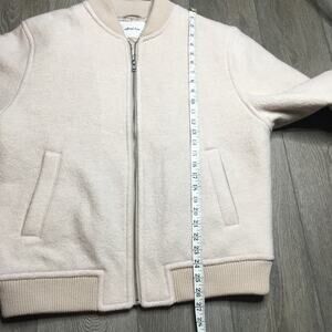 Aritizia Wilfred Free Stable Insulated Merino Wool Bomber Jacket Tan Cream Rib Trim M