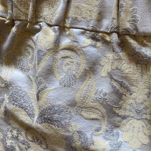 Great condition. Beautiful brocade style silk fabric. Hem and pockets finished with silk crepe de chine binding. Front pockets, elastic back waistband. Fabric made in Italy.