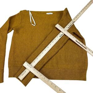 Aritzia Babaton Sweater Womens Medium Yellow Merino Wool Ribbed Cuffs & Hem Boat Neck.