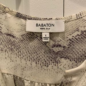 Babaton by aritzia silk blouse in white and gray snakeskin print. Button front with micropleats at shoulders. Beautiful blouse with no signs of wear. 100 % silk,
