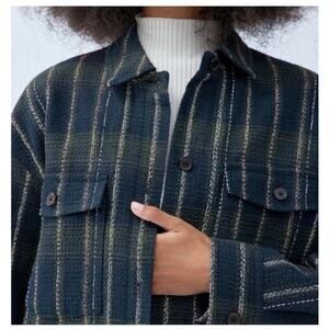 Aritzia BABATON Joan Oversized Shirt Jacket Navy Green Shacket Size 2
