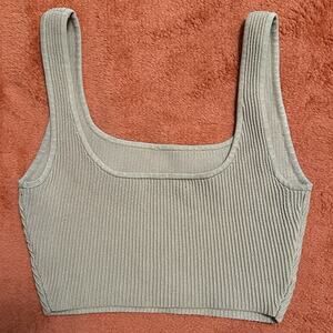 Aritzia BABATON Sculpt Knit Taupe Ribbed Square Neck Cropped Tank Top Women’s XS