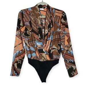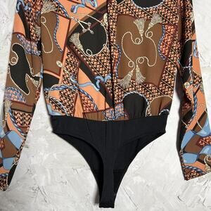 Aritzia Babaton Ambrose Contour Thong Bodysuit Womens XS Long Sleeve V-Neck Blouse