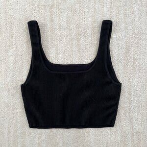 Aritzia Babaton Arjun Sculpt Knit Black Ribbed Tank Crop Top M