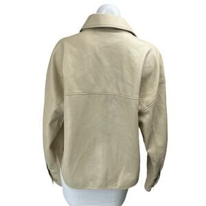 Aritzia Babaton Beige Faux Vegan Leather Button Down Collar Shirt Coat ShacketJacket M