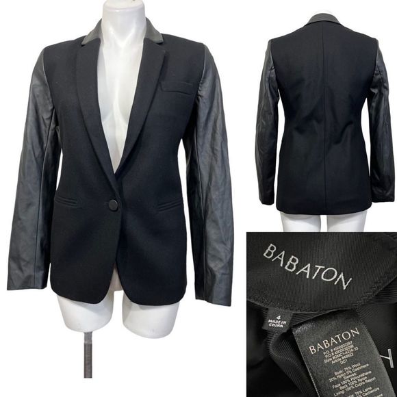 Stylish Babaton blazer. Black body with leather sleeves. Perfect for a chic look.