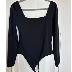 Aritzia Babaton Black Contour Squareneck Longsleeve Thong Bodysuit, Size L, EUC