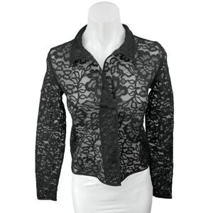 Aritzia Babaton Black Floral Lace Sheer Long Sleeve Collared Blouse Top Size XXS