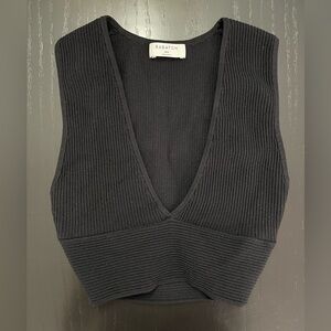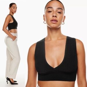 Aritzia Babaton Black Sculpt Knit Deep V Crop Top