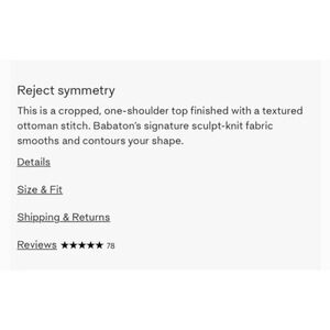 Aritzia Babaton Black Sculpt Knot One-Shoulder Cropped Tank- Small