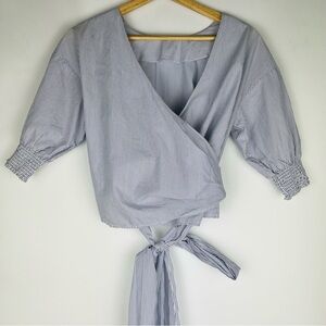 Stunning wrap top by Aritzia brand Babaton with buff sleeves. Size XS. About 16.5 inches from pit to pit laying flat. About 18.5 inches long. Excellent condition with no defects.