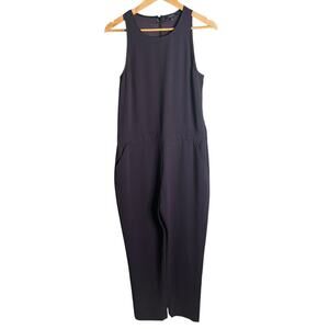 Babaton by Aritzia Branson Jumpsuit in Deep Plum / Purple / Black. Size 4. Features round neck, sleeveless, straight leg, pockets, and cutout keyhole detail at the back. 82% Triacetate, 18% Polyester. Excellent condition, no flaws.