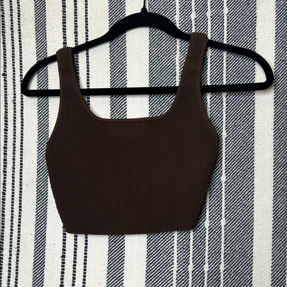 Aritzia Babaton Brown Mocha Knit Sculpt Crop Tank