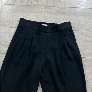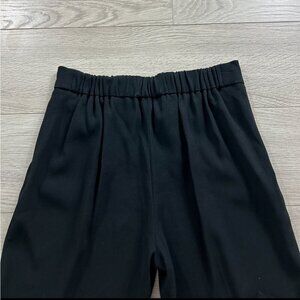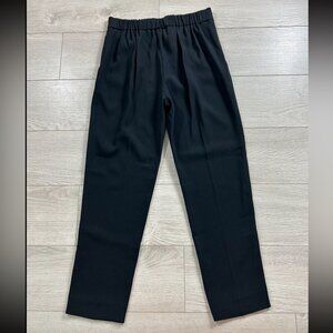 These are cropped, slim-leg trousers with an elastic back waist and front darts for shaping. This version is made with Terado™, a Japanese fabric that's matte crepe on one side and satin on the other.