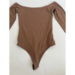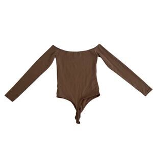 Aritzia BABATON Contour Brown Off Shoulder Long Sleeve Bodysuit Womens Sz Small
