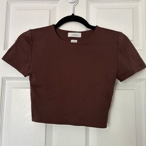 Aritzia Babaton Contour Crew Crop Top in Coffee Bean