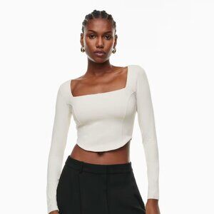 This is a cropped squareneck longsleeve with bustier-inspired seaming details and double-layer fabric for a supportive fit. It’s made with Babaton’s signature Contour — luxe, ultra-flattering fabric coveted for its smoothing effect and second-skin feel. Essential for every body. Hidden Hold Loops keep your bra straps in place and out of sight.